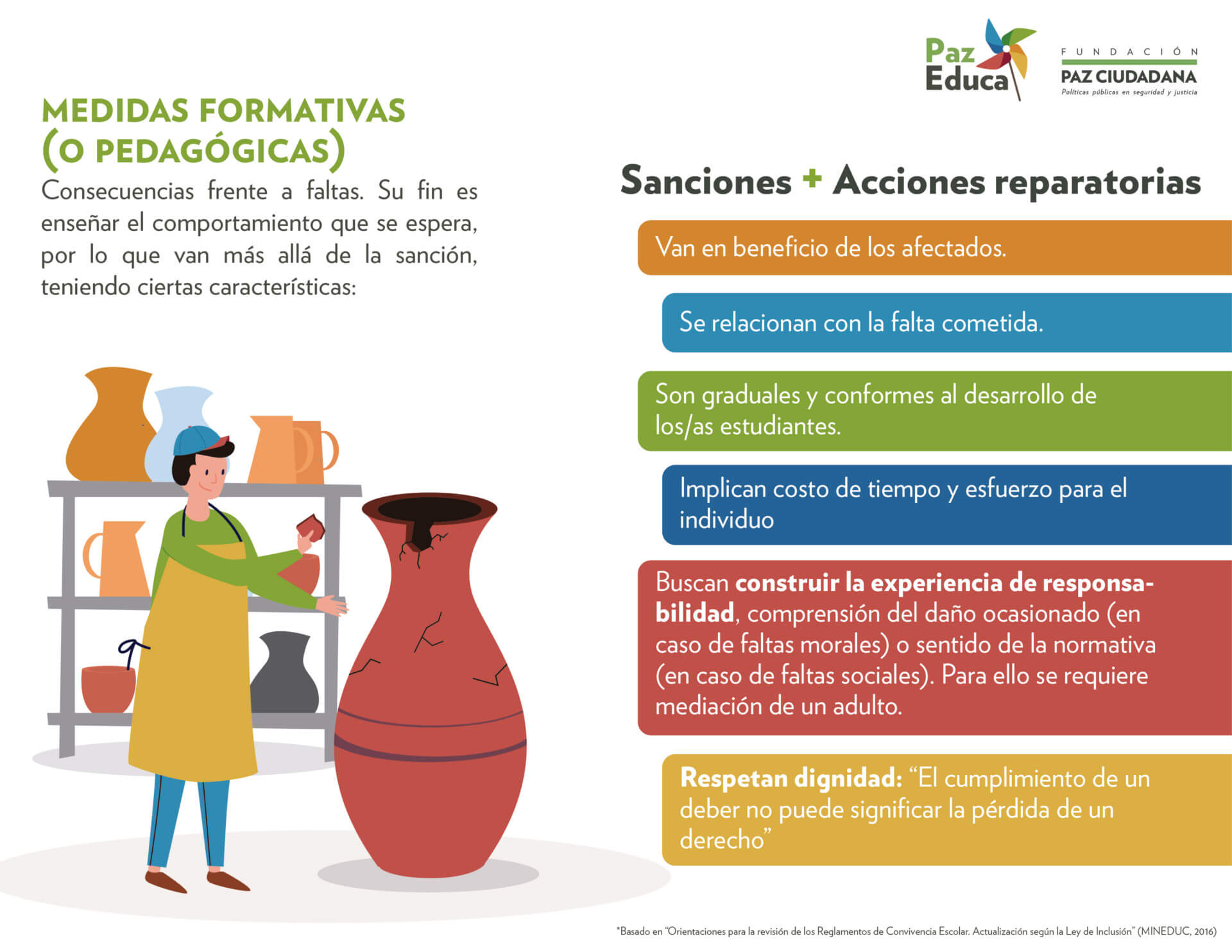 Esta sección está dirigida a estudiantes, apoderadas y apoderados, con infografías prácticas sobre algunas temáticas recurrentes en el ámbito de la convivencia escolar.