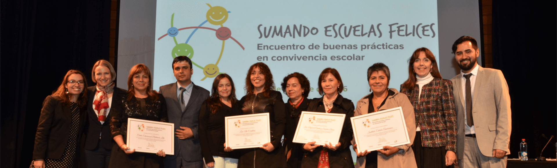 El reconocimiento fue parte de un amplio encuentro organizado por la institución denominado “Sumando Escuelas Felices”, realizado con el auspicio de Enel, en el auditórium del Edificio de Telefónica en Santiago, y que contó con la presencia de directivos del Ministerio de Educación y la Agencia de Calidad de la Educación.
